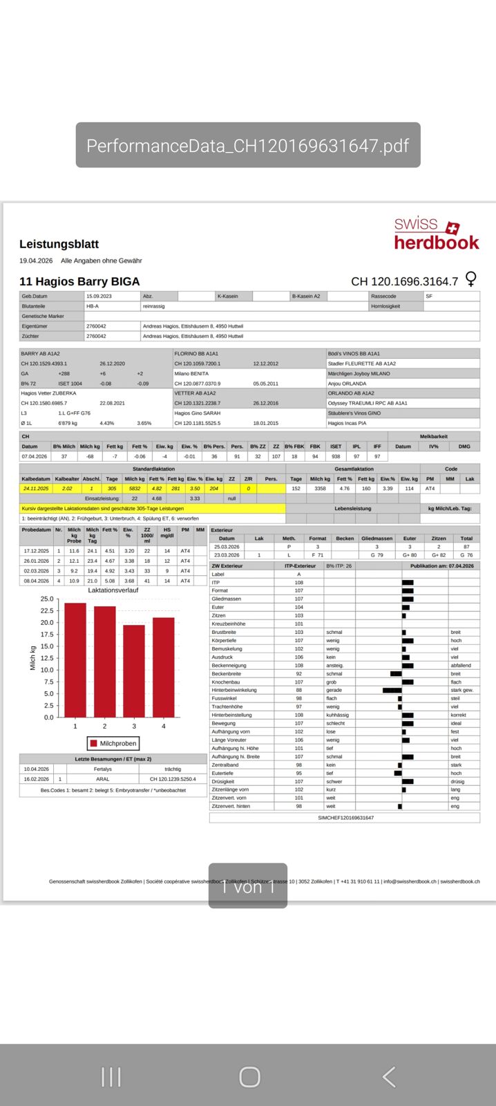Kleine sf kuh wider trächtig. Mit guten Inhaltsstoffen letztes Kontrolle 5.08 Fett und 3.68 eiweiss. 1 Kleine zusätzliche zitze