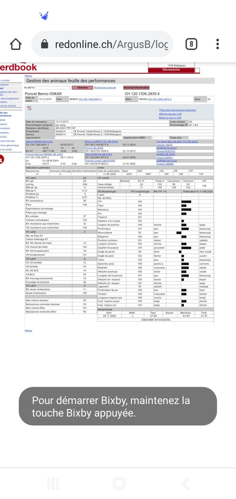 Fils de Poncet Sascha OBAMA EX91,Oskar est un taureau qui saillit déjà. Sa mère a une moyenne sur 6 lactations de 6673 Kg avec 3.94 mg et 3.68 p. Aus der super Poncet Sascha OBAMA EX91, der Stier Oskar ist schon Sprungarantiert. Mutter hat Durchschnitt von 6 Lakt mit 6673 Kg 3.94 F und 3,68 E