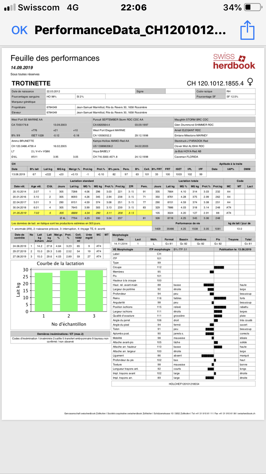 Bonne vache sans problème !! Elle a passé tous les étés à l’alpage !! Habituée à la stabulation et à l’attache !!Cellules au dernier contrôle :59. Problemlose gute RH-Kuhe. Hat jede Sommer im Alp verbracht. Anbinde-und-Laufstall gewohnt. ZZ 59.