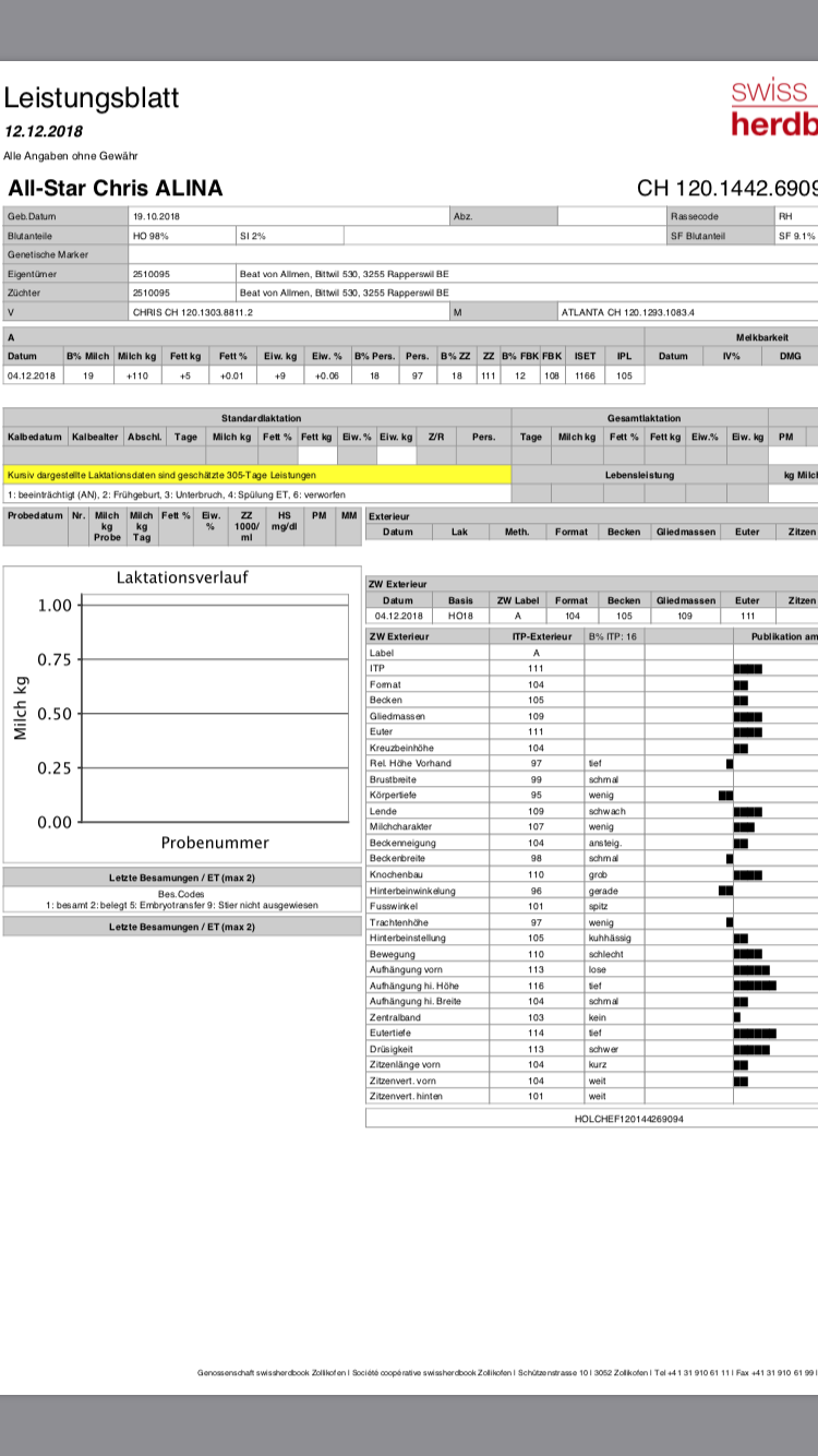 Schönes feines RH Kuhkalb. Vater Artemis x Joyboy Mutter tiefe Zehlzahlen Jolie vachette RH fine. Père ARTEMIS x JOYBOY. La mère a du lait avec peu de cellules.