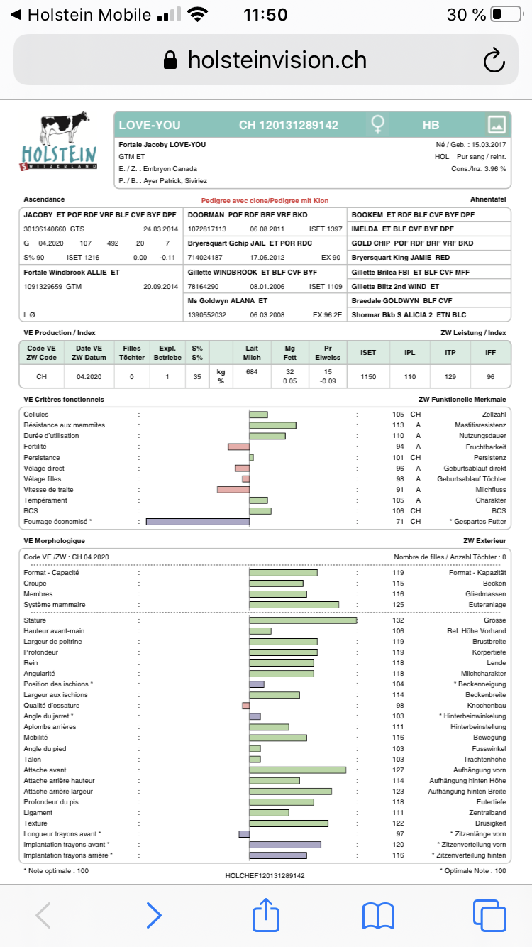 Lot de deux embryons sexés. Pères des embryons : crushabull SX letsgo SX Chief SX Mère des embryons : Fortale Jacoby LOVE-YOU VG85 global au premier veau avec la superbe note de VG88 au système mammaire (Photo 2). Une vache très connue dans le pedigree la fameuse Goldwyn ALANA EX96 (Photo 1). Le prix à miser est pour les deux embryons ensemble. Los von zwei sexierten Embryonen. Väter von Embryonen: Crushabull SX Letsgo SX Chief SX Mutter der Embryonen: Fortale Jacoby LOVE-YOU VG85 Gesamtbewertung im ersten Kalb mit der hervorragenden Bewertung von VG88 im Eutersystem (Bild 2). Eine sehr bekannte Kuh im berühmten Stammbaum: Goldwyn ALANA EX96 (Bild 1). Der Preis gilt für die beiden Embryonen zusammen.