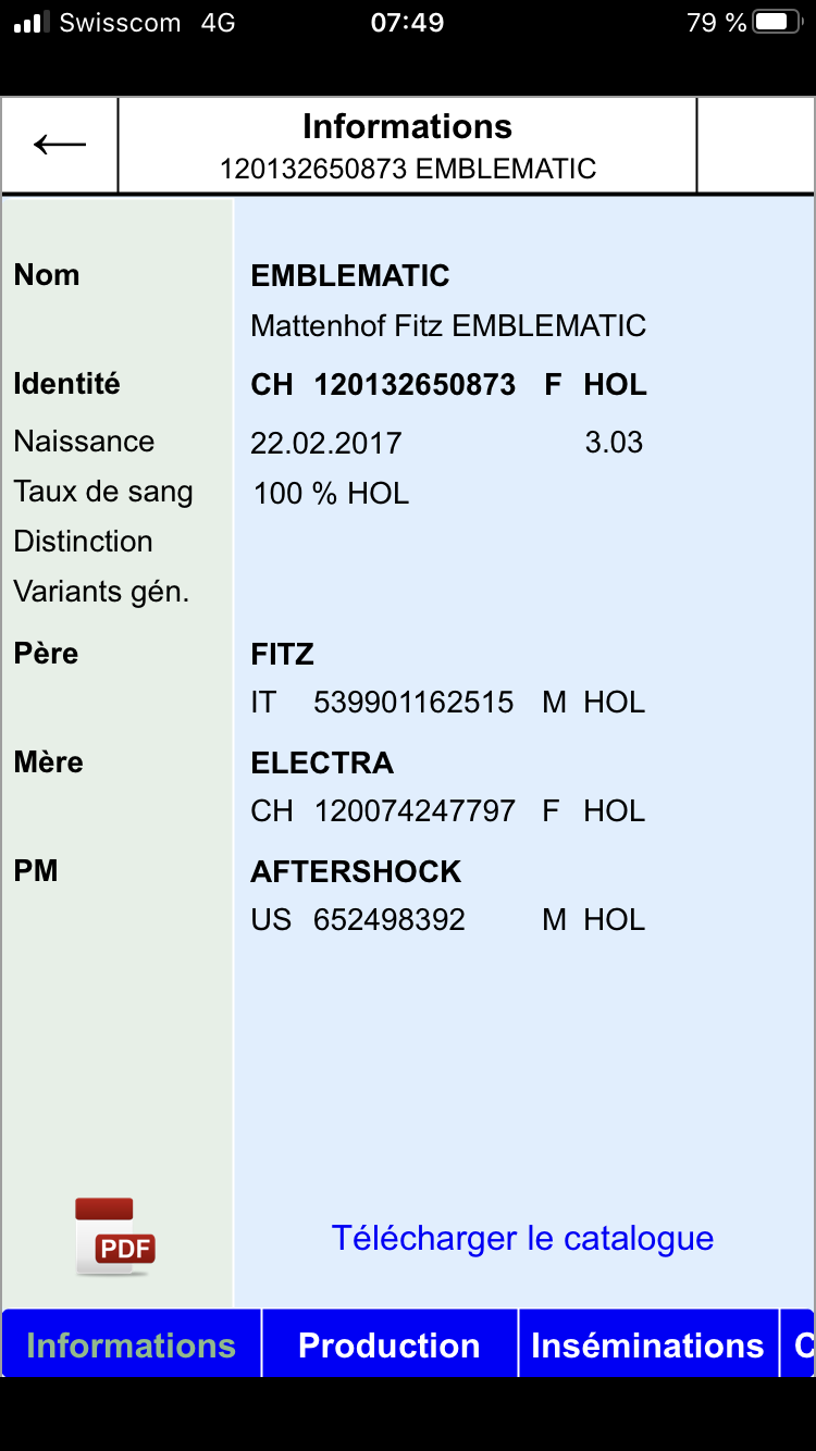 Superbe vache du taureau Fitz, pleine de lait et avec une classification qui tient la route ! Une note de VG85 au global lui a été attribué, ainsi que la superbe note de VG86 pour le pis. Emblématic est fraîche vêlée de dimanche dernier et atteint déjà la quantité de 40 litres de lait. Hervorragende junge Kuh aus dem Stier FITZ, voller Milch und mit einer Klassifizierung der Extraklasse! Ihr wurde eine globale Bewertung von VG85 sowie die hervorragende Bewertung von VG86 für das Euter verliehen. Emblématic ist von letzten Sonntag frisch gekalbt und hat bereits die Menge von 40 Litern Milch erreicht.