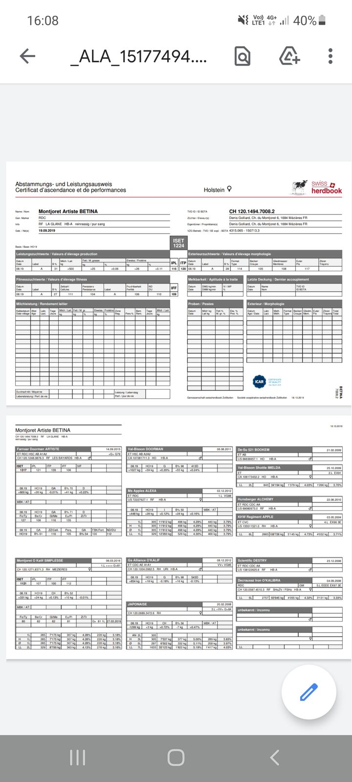 Jolie génisse du taureau Artiste.Très robuste.Elle a était inséminée aujourd'hui (18.03.21) avec le taureau Diego(Angus).La mère et la grand-mère ont de très bonnes teneurs.Elle a eu des datres mais elles se résorbent. Schöne Färse vom Artiste-Stier, sehr robust. Sie wurde heute (18.03.21) mit dem Bullen Diego (Angus) besamt.die Mutter und die Großmutter haben sehr gute Noten.sie hatte einige Flechten aber die gehen weg.