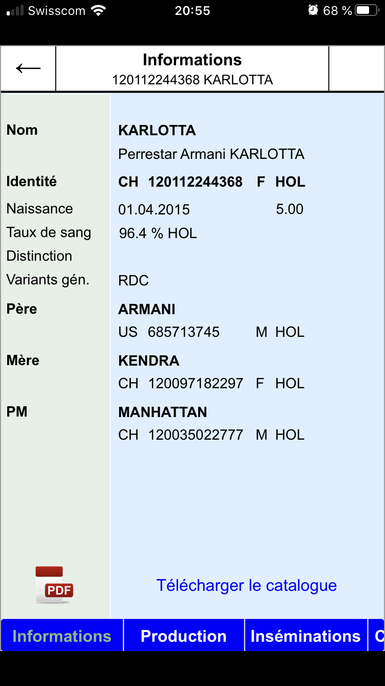 Belle vache du taureau Armani en troisième lactation. Vache lourde. Karlotta est vg89 au global avec une note d’ex91 au pis. Schöne Kuh aus dem Stier ARMANI. Sie ist in ihrer 3. Lakt. Schwere Kuh. KARLOTTA wurde VG89 eingestuft mit einer Noten von EX91 im Eutersystem !!